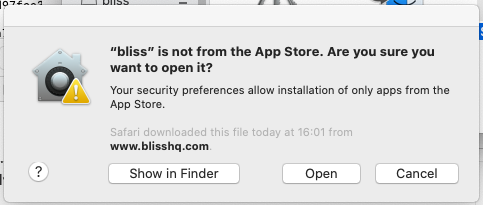 bliss should now run and will do so 'normally' from now on; you can run the app by double-clicking it as before.